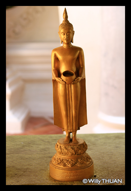 The Friday Buddha image is standing with both arms crossed over the chest with the right hand covering the left.A short period after the enlightenment, while the Lord Buddha stayed under the Banyan tree, he stated that it was too difficult for ordinary people to understand dharma and bring it into practices. He was discouraged to teach dharma.This Dharma that I have found is profound, hard to see, hard to understand; it is peaceful, sublime, beyond the sphere of mere reasoning, subtle, to be experienced by the wise. But this generation takes delight in attachment, is delighted by attachment, rejoices in attachment and as such it is hard for them to see this truth, namely…nirvana.However , with his great mercy and loving – kindness , he clearly understood that living creatures possessed different habits just like nature of a lotus.